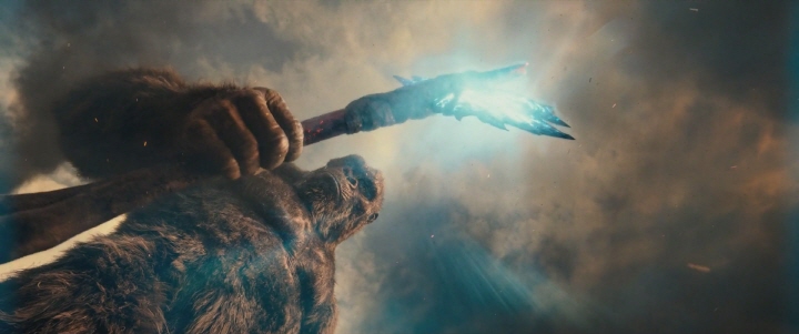 이윽고 화면 가득 클로즈업된 이 괴수의 매서운 눈에선 고질라처럼 푸른 빛의 안광이 번뜩이죠.